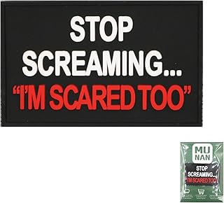 Stop Screaming I'm Scared Too タクティカル PVC パッチ Stop Screaming I'm Scared Too バッジ 縫い付けパッチフックバック粘着 (ブラック)