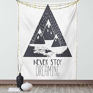 Ambesonne引用符装飾コレクション, Never Stop Dreamingデザインボヘミアントライバル羽将来とHopeテーマアート印刷、ベッドルームリビングルーム寮壁吊りタペストリー、ブラウンブルーホワイト 60' W By 40' L wid_19184_60x40