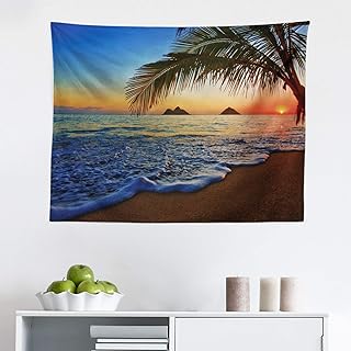 Ambesonne ハワイアンタペストリー ラニカイビーチ ハワイの太平洋日の出 カラフルなスカイウェイビーオーシャン表面シーン ファブリック壁掛け装飾 寝室 リビングルーム 寮に 28インチ x 23インチ ブルーブラウン