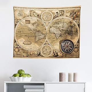 Ambesonne Wanderlust タペストリー 古い地図 1626 世界地図 歴史的原稿 布製 壁掛け装飾 寝室 リビングルーム 寮 23インチ x 28インチ ブラウン ブラック ペールブラウン