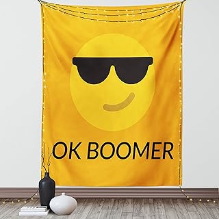 Ambesonne OK ブーマー タペストリー 風変わりなクール サングラス付き ミームテキスト 面白いファッション ファブリック 壁掛け 寝室 リビングルーム 寮用 23インチ x 28インチ グレーイエロー