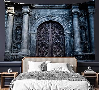 おとぎ話のファンタジーワールドの玄関 レトロタペストリー マジカルキャッスル 壁掛けパーティーデコレーション ホームデコレーション ピクニックマット 寝具 壁ブランケット 寝室 リビングルーム 寮用アート 60インチ x 80インチ