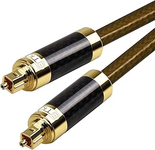 EMK光デジタルケーブル TOSLINK (トスリンク) 角型 炭素繊維シェル 金メッキ 高耐久デジタルオーディオ オプティカルケーブル,PS4/Xbox/サウンドバー/TVスピーカーなどに (3m, ブラウン色)