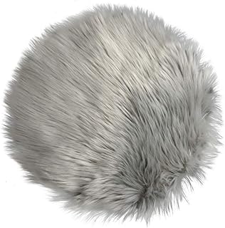 IVON フェイクファーラグ ラウンドグレーエリアふわふわマット リビングルーム用 写真用装飾 15.5インチ
