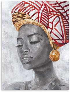 B BLINGBLING アフリカンウォールアート リビングルーム用 アフリカンイヤリング ブラック レディース アフリカンウォールアート リビングルーム用 素朴な壁装飾 フレーム付き すぐに掛けられます(24インチ x 32インチ x 1パネル)